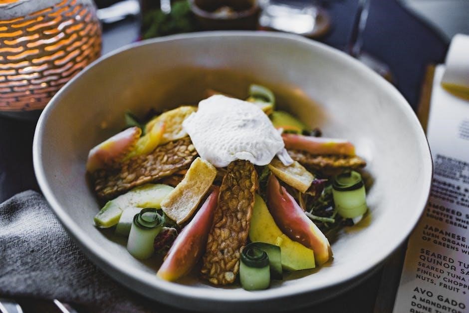 The Mias Table menu PDF simplifies meal planning with its clear layout and detailed descriptions. Customers can easily browse through breakfast‚ lunch‚ and dinner options‚ including prices and ingredients‚ from the comfort of their homes. This convenience allows diners to decide what to order before arriving at the restaurant‚ saving time and reducing indecision. The PDF format is user-friendly‚ enabling users to zoom in‚ search for specific dishes‚ and share the menu with others. Whether planning a family dinner or a quick meal‚ the PDF menu ensures a seamless experience. It also helps in making informed choices‚ especially for those with dietary preferences or restrictions. By providing transparency and accessibility‚ the PDF menu enhances the overall dining experience‚ making it easier for customers to enjoy their meals at Mias Table.